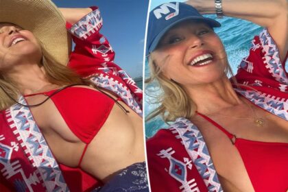 Christie Brinkley posed in a burning bikini bikini a boat ride during…