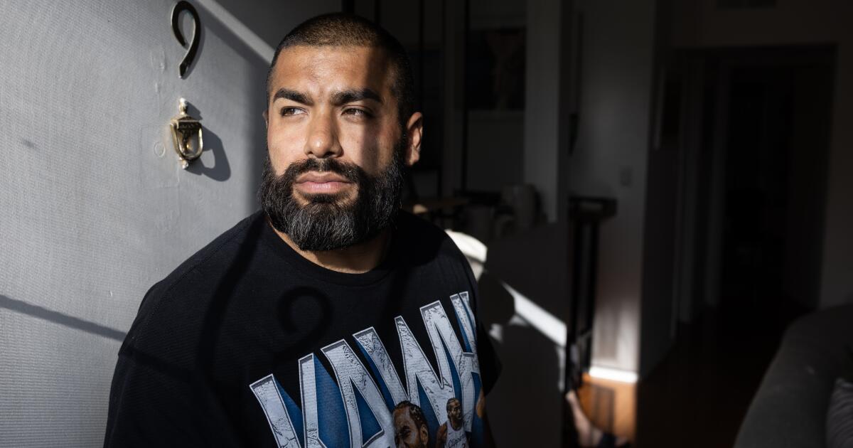 Job García in his apartment in Silver Lake on Friday, June 20, 2025 in Los Angeles, CA. Garcia, an American citizen, was arrested and Hero Duration a raid in Los Angeles is Home Depot on Thursday, June 19, 2025. He was released at 8:30 am on Friday morning.